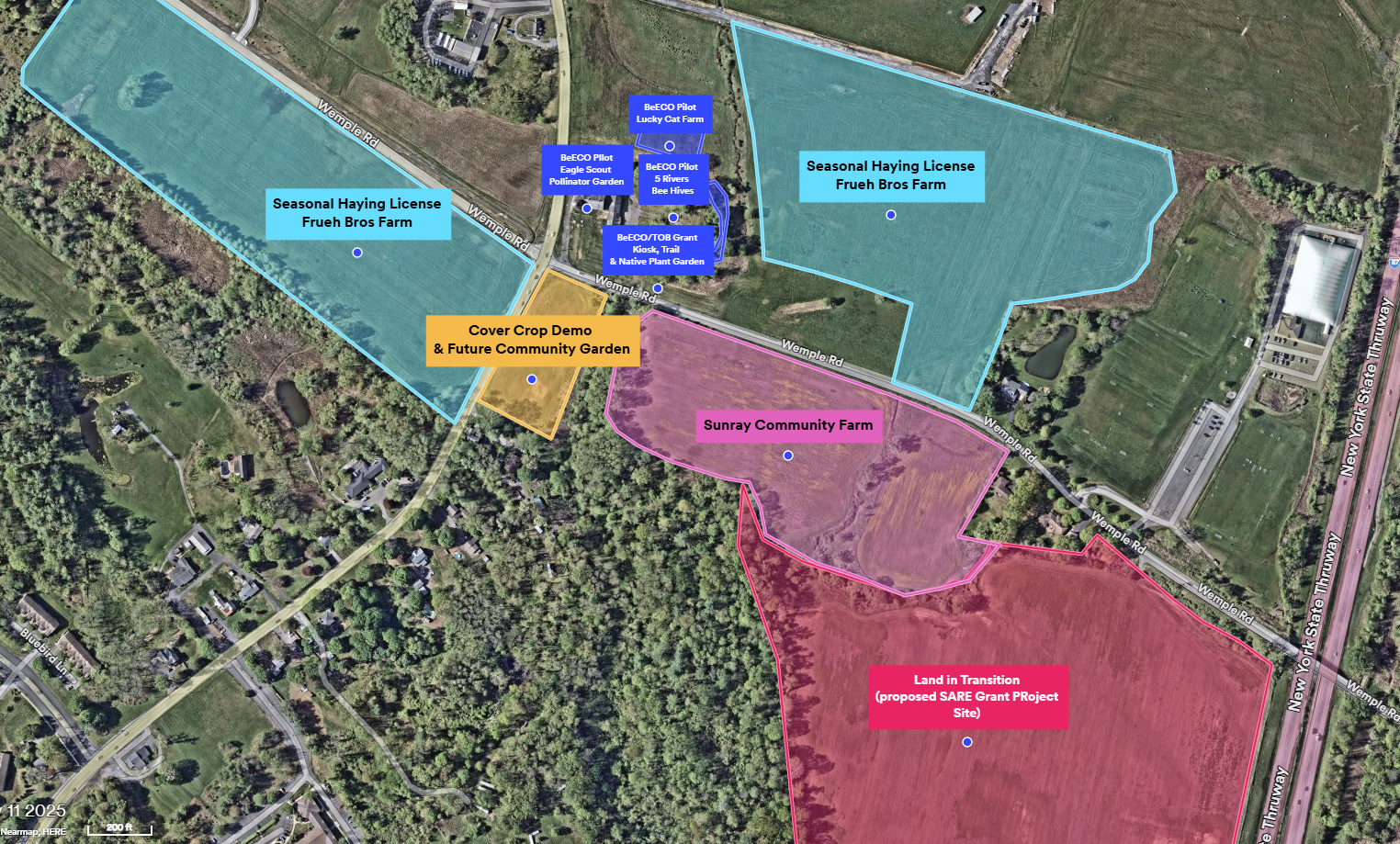 Two of our fields have been placed in a seasonal haying license. These are beautiful hay fields and will feed our neighbor’s cows. A third field (11 acres) has been entered into a 3-year lease for SunRay Sustainability, a small-scale regenerative farm and nursery project in the Capital Region.